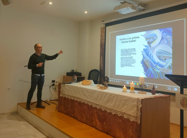 Durante la charla nos hizo un recorrido por la vida de la Virgen María desde "La Anunciación" hasta su muerte y "Asunción al cielo".